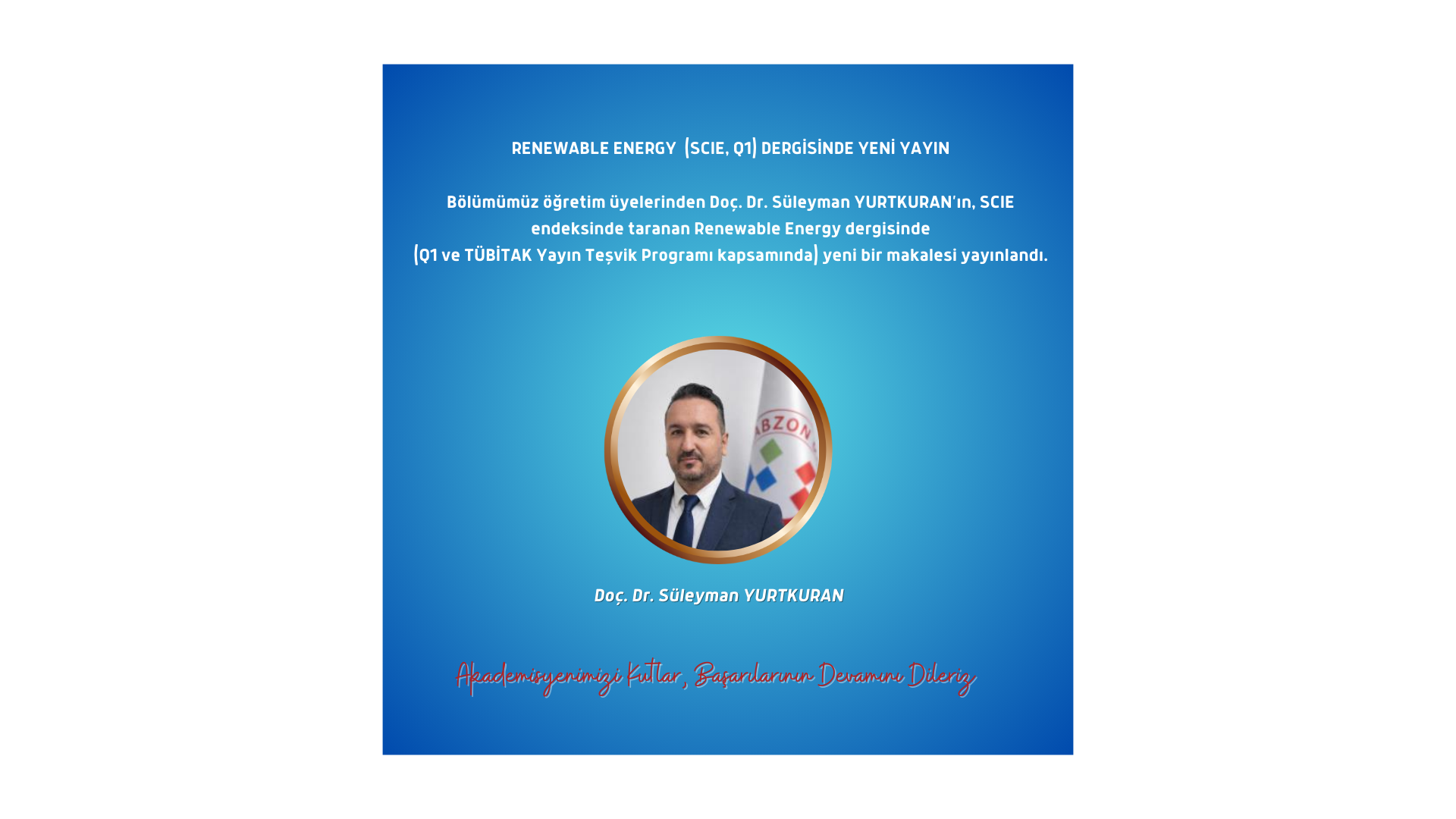 Akademisyenimizi tebrik eder, başarılarının devamını dileriz.